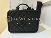 シャネル フィリグリーのバニティバッグ1点をお買取りしました! バニティバッグとはファスナーで開閉するボックス型のバッグであり、主に化粧道具入れとして用いられるバッグです。近年のミニバッグのトレンド化のために、バニティバッグが再評価され、人気が高まっています。落ち着いたブラックカラーと正面に配置されたココマークがシャネル特有の高級感やエレガンスを感じさせてくれます。 ジュエルカフェではブランドバッグを幅広くお買取りさせていただきます。どんな状態でも構いません、付属品などが無くても問題ありません。1点からでもお気軽にお持込みくださいませ。みなさまのご来店をお待ちしております。